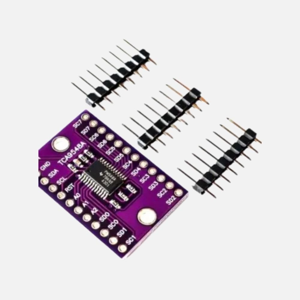 The TCA9548A I2C Multiplexer Module is a powerful solution for projects requiring multiple I2C devices with identical addresses. Since I2C communication allows multiple devices to share the same bus, address conflicts can arise when integrating identical sensors or peripherals. The TCA9548A resolves this issue by providing eight independent I2C channels, allowing users to control each device individually via a simple I2C command.